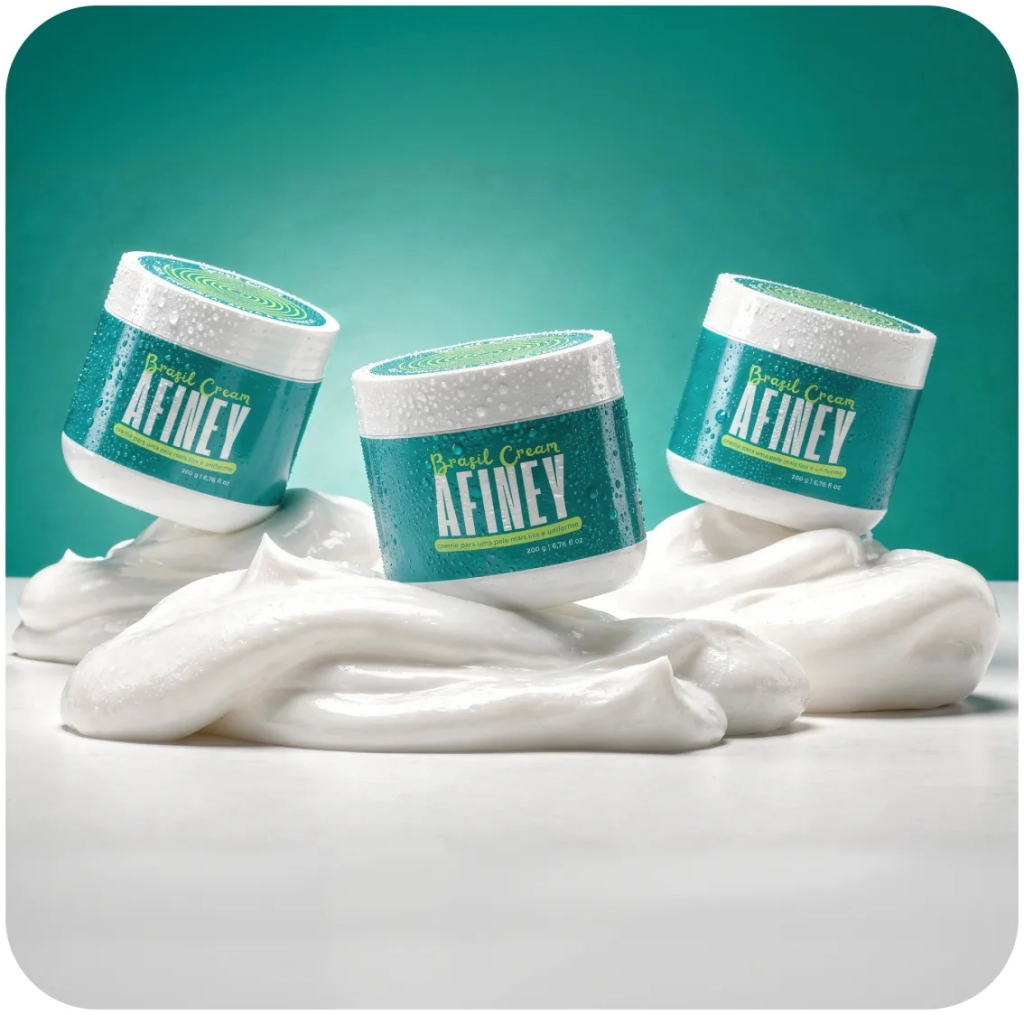 A AFINEY possui uma fórmula exclusiva com ativos que ajudam na circulação e potencializam o efeito modelador, entregando resultados mais rápidos e perceptíveis em comparação a cremes comuns.