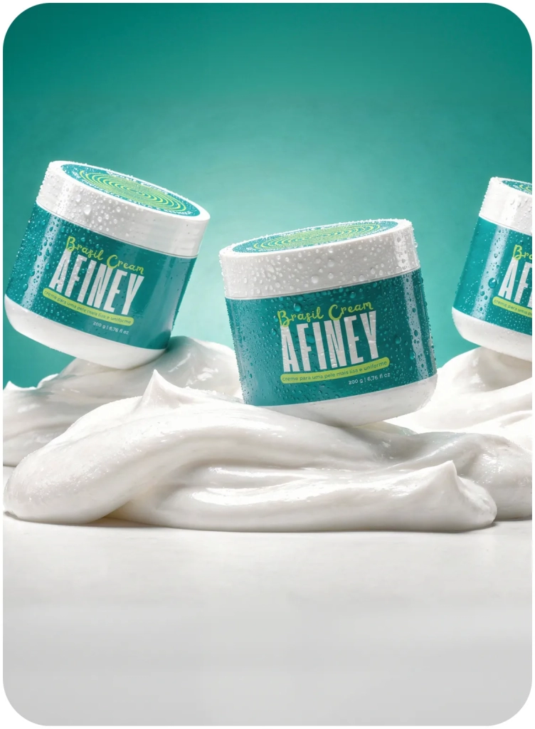 AFINEY é o nosso primeiro produto: o creme que afina, firma e trata a celulite com nanopartículas de liberação prolongada. Feito no Brasil, para mulheres que exigem resultado de verdade.