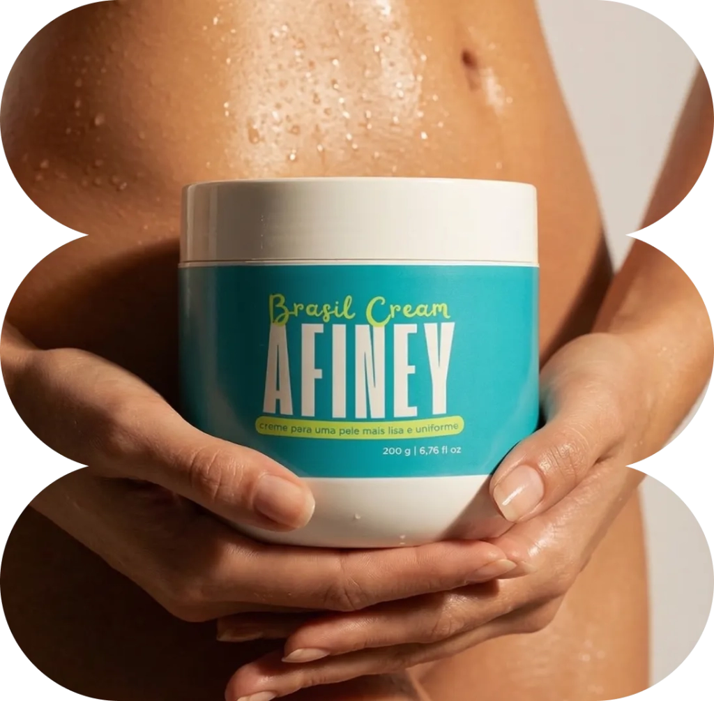 AFINEY é o único creme modelador do Brasil com 4 nanotecnologias ativas. Ao aplicar, você sente gelar, aquecer e a ação afinadora desde o primeiro uso.